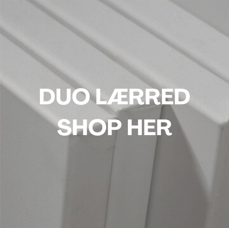 Udover bomuld- og hørlærreder, tilbyder vi også duo lærreder, også kendt som dobbelt dydbe lærreder eller boxlærreder. Duo lærreder er malerlærreder med en tykkelse på 40 mm. i bomuld. Denne form for lærreder er meget eftertragtede til malerier, der skal have en imponerende og iøjnefaldende fremtoning uden brug af ramme. Den ekstra dybde giver dig mulighed for at udvide dit værk helt ud til siderne af malerier, så det kan nydes fra alle vinkler. Alle vores duo lærreder bliver produceret på bestilling, og ved køb af seks lærreder i samme størrelse, tilbyder vi en rabat på 10%. Se vores udvalg af duo lærreder her.